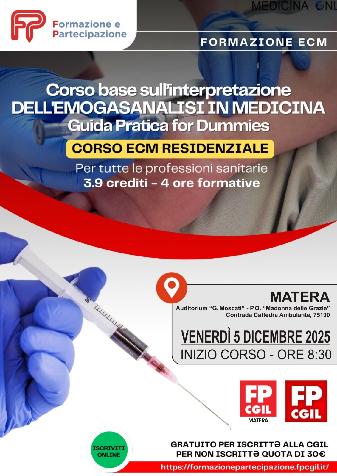 • Corso Sede: Matera - Aula “G. Moscati” - P.O. Madonna delle Grazie – Contrada Cattedra Ambulante