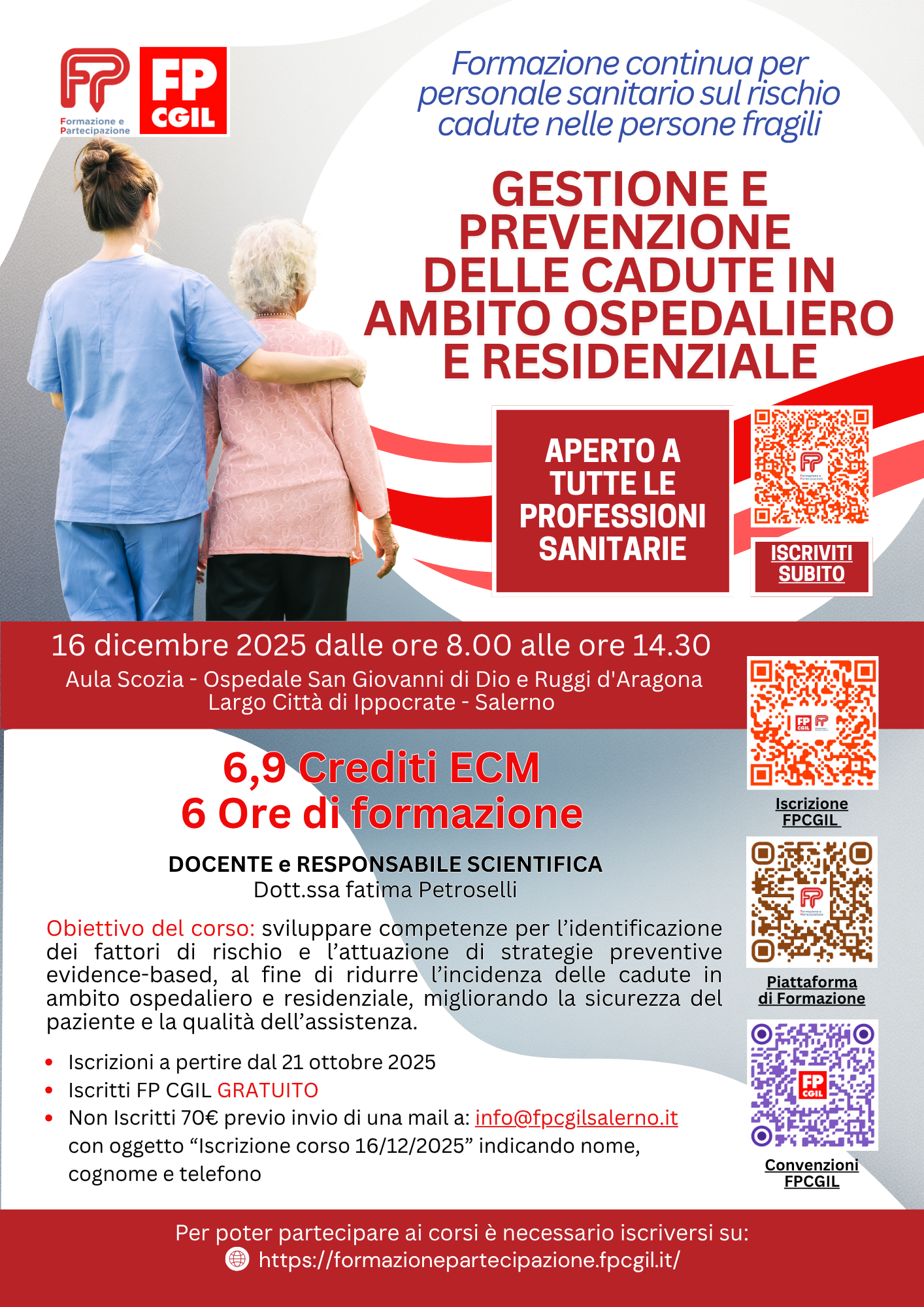 - Non Iscritti 70€ previo invio di una mail a: info@fpcgilsalerno.it con oggetto “Iscrizione corso 16/12/2025” indicando nome, cognome e numero di telefono