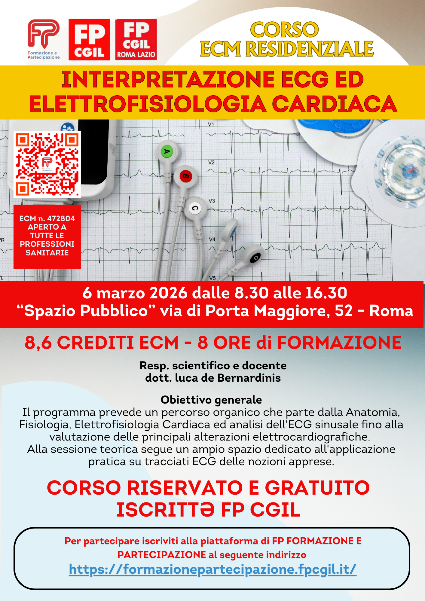 Lo scopo del corso è di fornire al partecipante gli elementi fondamentali per interpretare l’ECG ed a chi già conosce l’elettrocardiografia di base, offrire spunti di approfondimento della materia.