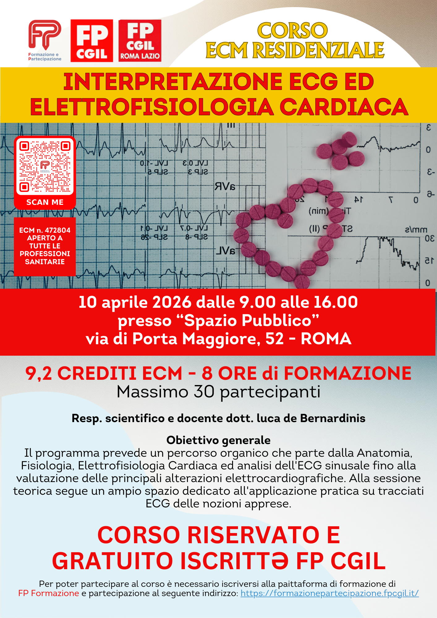 Lo scopo del corso è di fornire al partecipante gli elementi fondamentali per interpretare l’ECG ed a chi già conosce l’elettrocardiografia di base, offrire spunti di approfondimento della materia.