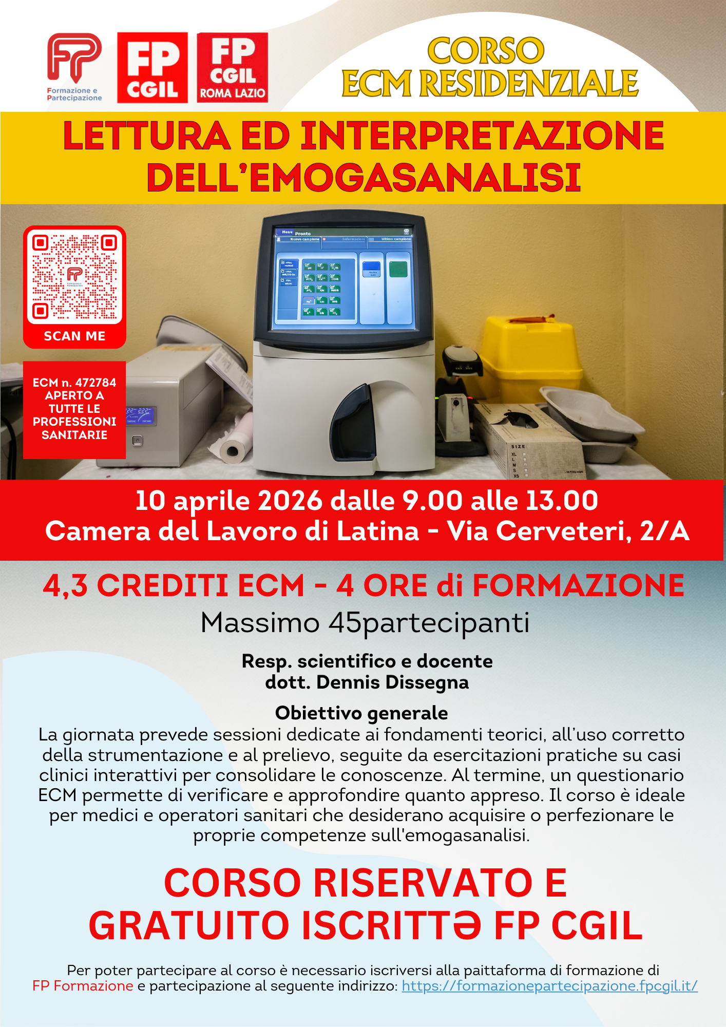 - Corso Sede: Camera del Lavoro di Latina Via Cerveteri, 2/A