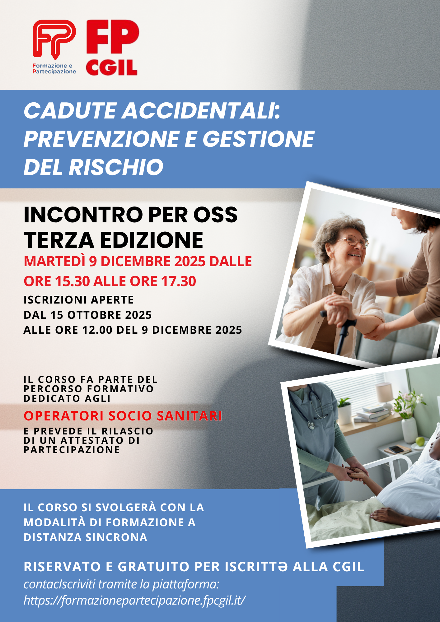 Corso dedicato agli Operatori Socio Sanitari che si svolgerà in modalità FAD Sincrona organizzato dalla FPCGIL Nazionale Formazione.