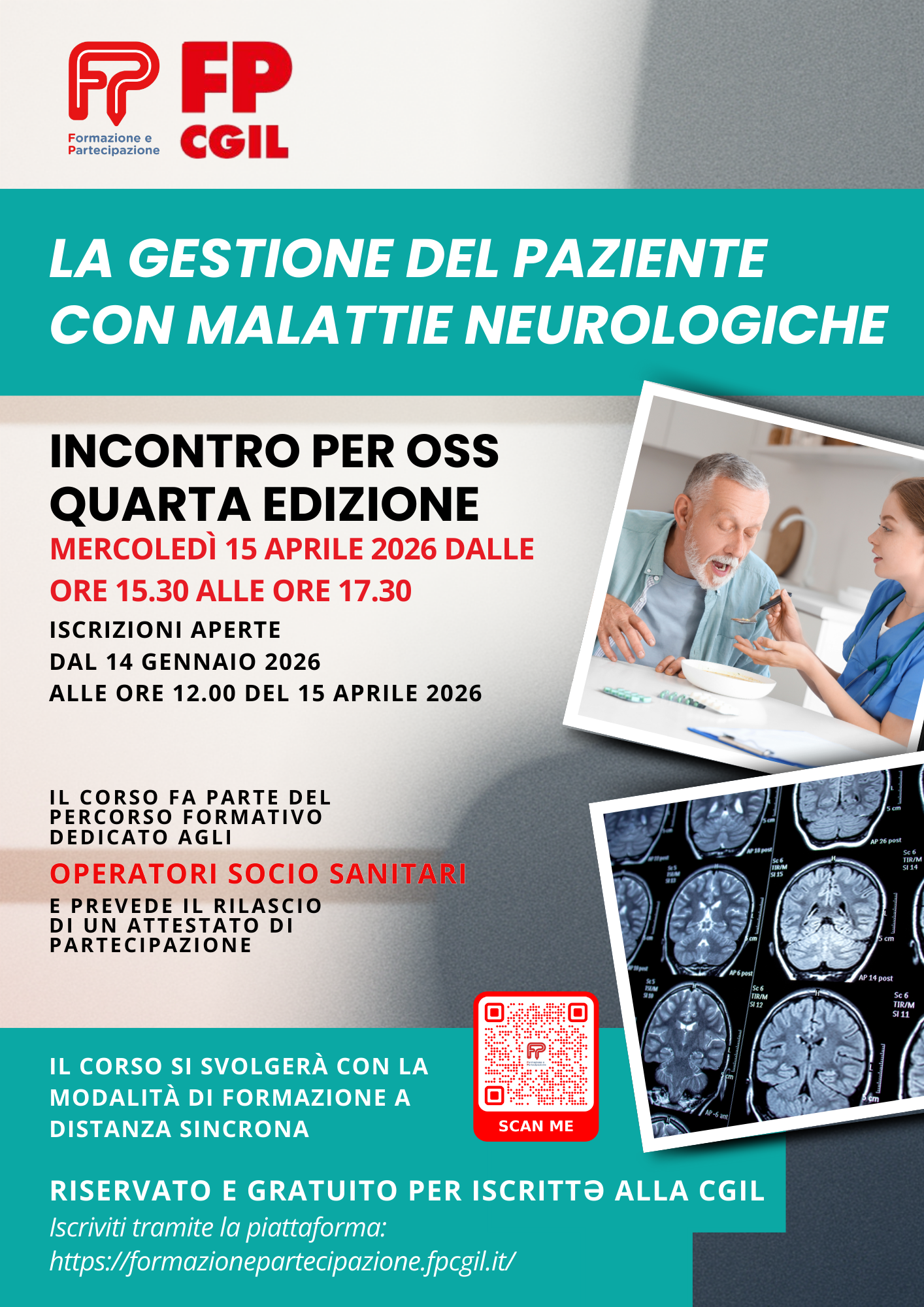 Corso dedicato agli Operatori Socio Sanitari che si svolgerà in modalità FAD Sincrona organizzato dalla FPCGIL Nazionale Formazione.