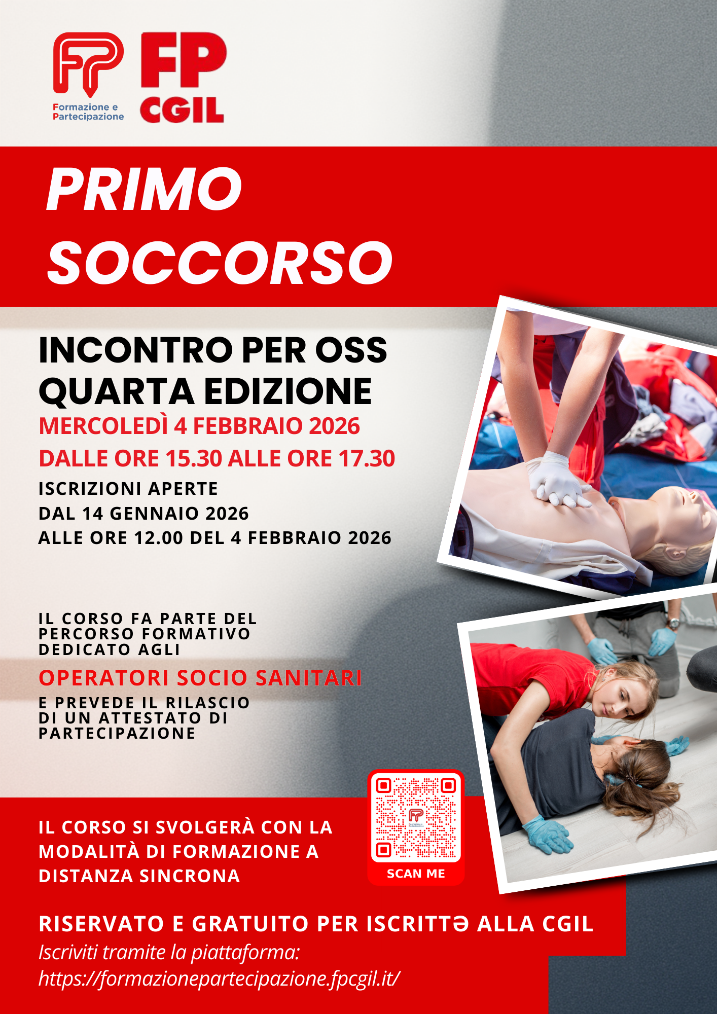 Corso dedicato agli Operatori Socio Sanitari che si svolgerà in modalità FAD Sincrona organizzato dalla FPCGIL Nazionale Formazione.